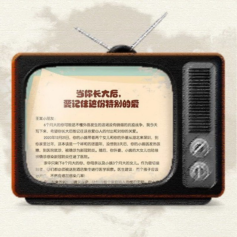 寶安區(qū)新安街道海富社區(qū)一名6個(gè)月大的孩子,因家里有人被確診為新型冠狀病毒感染的肺炎,被迫與家人分開進(jìn)行醫(yī)學(xué)觀察。海富社區(qū)工作人員們對其悉心照顧,如今孩子已經(jīng)平安度過了14天的居家觀察期。海富社區(qū)特意為孩子留下一封情真意切的書信,希望孩子長大后,能記住這段特殊時(shí)期收獲的特殊的愛。
