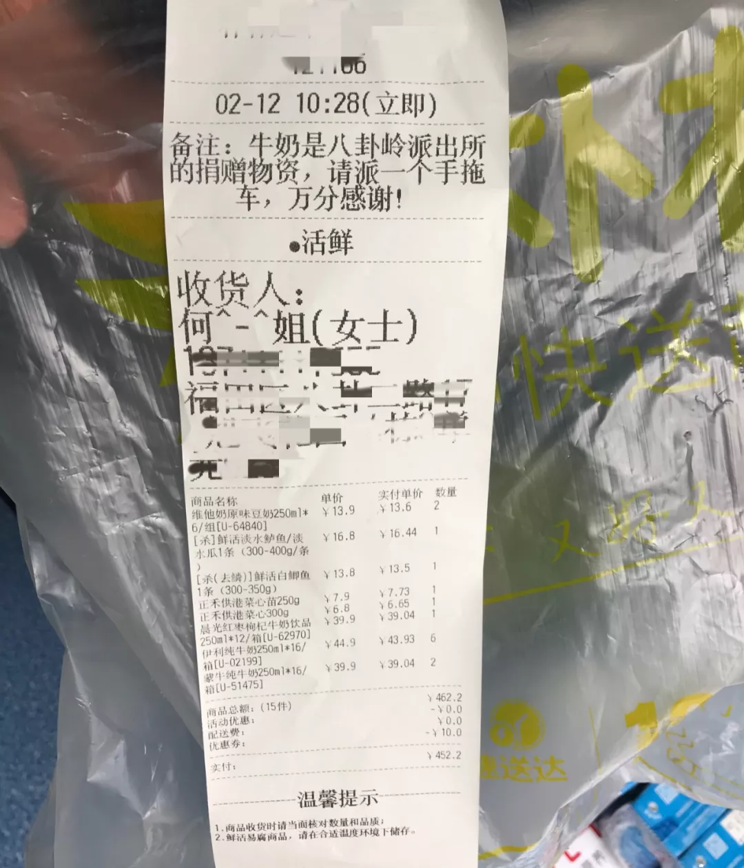 2月12日上午,一名群眾來到深圳市公安局福田分局八卦嶺派出所門口,送上防疫慰問物品。民警問及其姓名和聯(lián)系方式時,她只說:“民警的辛苦我們都看在眼里,這是我作為一名市民的心意和謝意?!北戕D(zhuǎn)身離開了。民警在清點紀錄物資時,無意中發(fā)現(xiàn)了該熱心市民訂購物資的一張采購單,八卦嶺派出所全體警務人員在這里對不肯留名的何女士表示衷心的感謝!疫情無情、人民有情,溫暖警心、堅定前行!