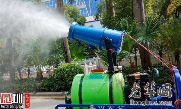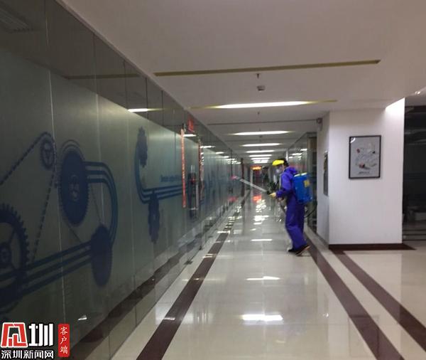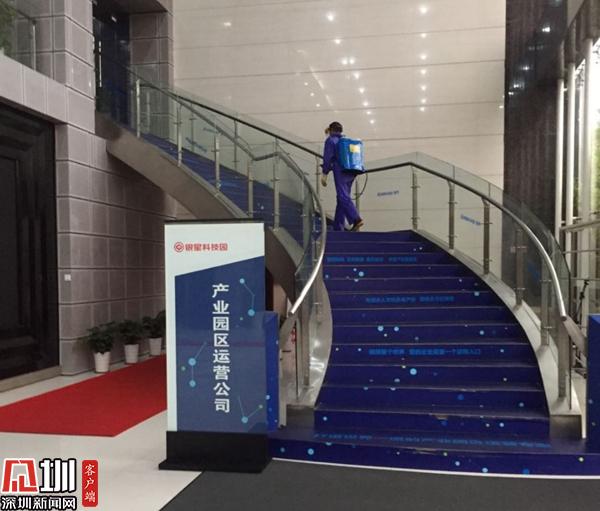 工作人員正在對園區(qū)進(jìn)行全面消殺。