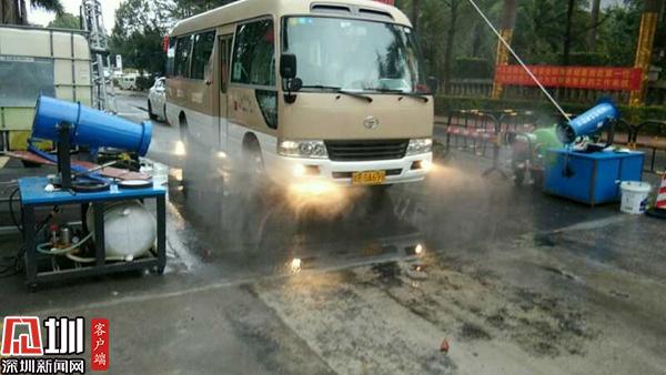 園區(qū)在車輛入口處嚴(yán)格對每一輛車進(jìn)行消毒處理。