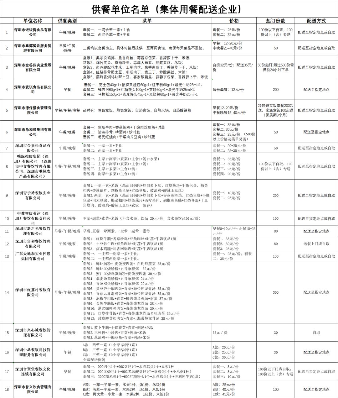 為了保障復工后集體用餐的安全,深圳市市場監(jiān)督管理局協(xié)調了安全的訂餐渠道,目前已經有79家供餐單位!