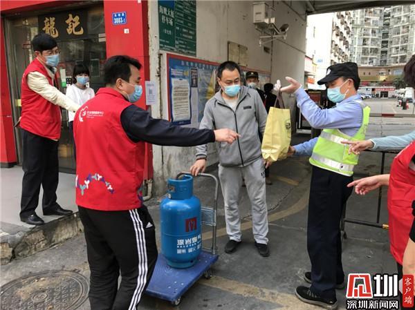 溫暖心連心,隔離不隔愛。在海鷹大廈大門口,深圳燃?xì)鈫T工運(yùn)來了一瓶煤氣,社區(qū)義工何洪斌在詢問得知是居家隔離戶的后,主動聯(lián)系當(dāng)事人親自送上門。在硬隔離的14天日子里,像這種家門口的“義送”,何洪斌每天平均消耗步數(shù)1.2萬步。
