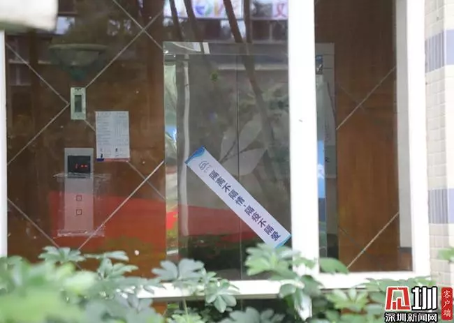 深圳南山一小區(qū)單元出入口,隔著玻璃看去,電梯上的封條寫(xiě)著“隔離不隔情、隔疫不隔愛(ài)”的溫馨提示。