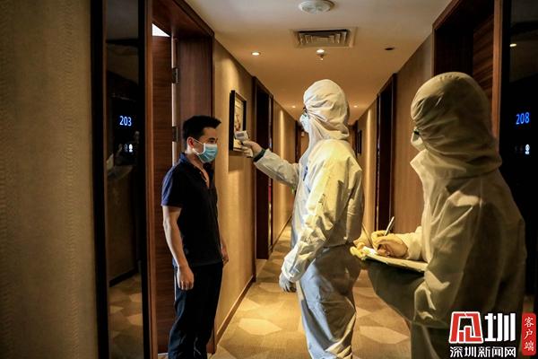 派駐酒店的疫情防控工作人員上門開展體溫測量
