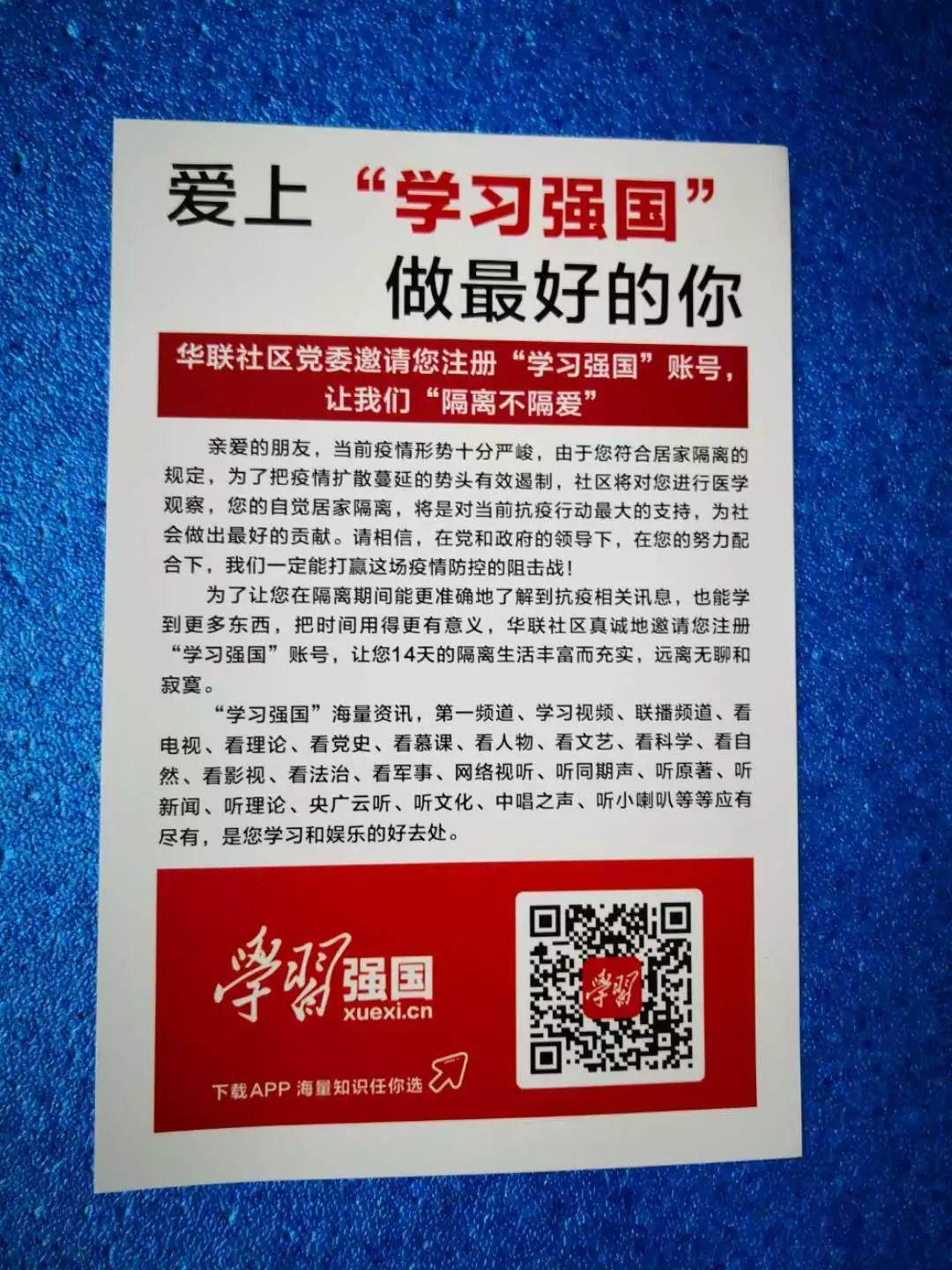 邀請隔離居民注冊“學習強國”
