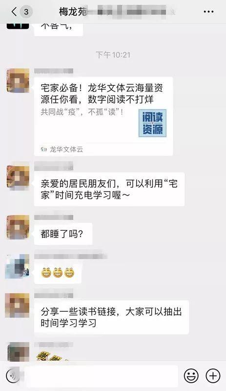 為緩解居家隔離人員情緒,豐富其精神文化活動,龍華街道還引導居民使用“龍華文體云”提供的免費數(shù)字資源庫進行線上學習,利用“宅家”時間“充電”,滿足居家閱讀需求,豐富精神世界,幫助居民充實快樂宅在家。