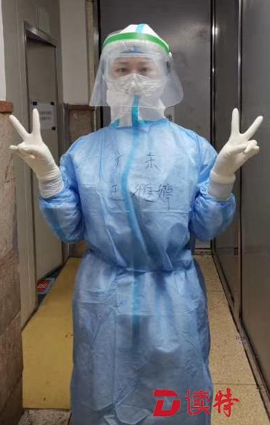 在忙碌之余,3位隊(duì)員也收獲了一份感動(dòng)。原來(lái),因?yàn)樗齻兌荚诜雷o(hù)服外面寫上了“廣東”和自己的名字,所以一進(jìn)入隔離病房后,就有患者向她們道謝:謝謝廣東的支援,你們辛苦了!“那一瞬間真的感覺很暖心,很感動(dòng)?!?/p>