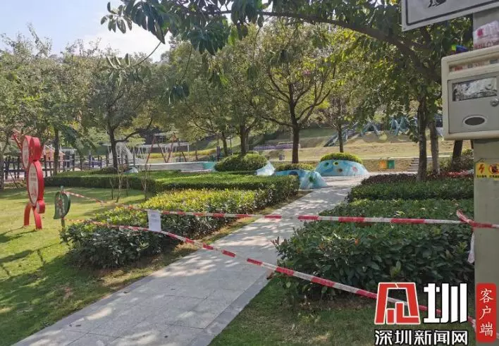 在光明區(qū)新城公園,記者看到公園里游樂(lè)設(shè)施區(qū)域已被封,暫未對(duì)外開(kāi)放。道路兩旁的小喇叭正播放著防疫宣傳廣播,提醒市民出門(mén)戴好口罩,勤洗手,注意防護(hù)。
