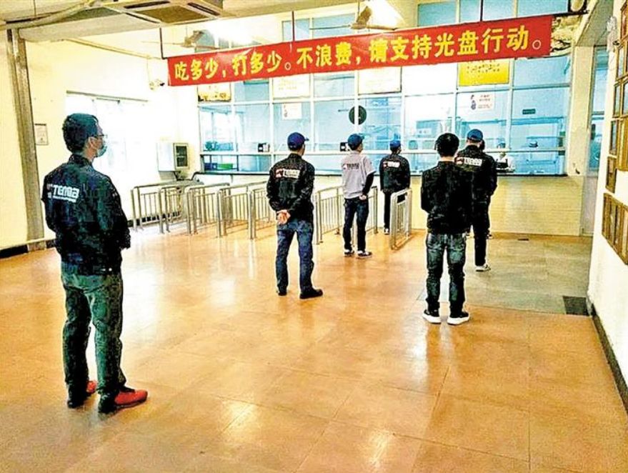 位于觀瀾街道的銀星科技園內(nèi),企業(yè)實行分餐分食制,安排員工分批有序用餐。
