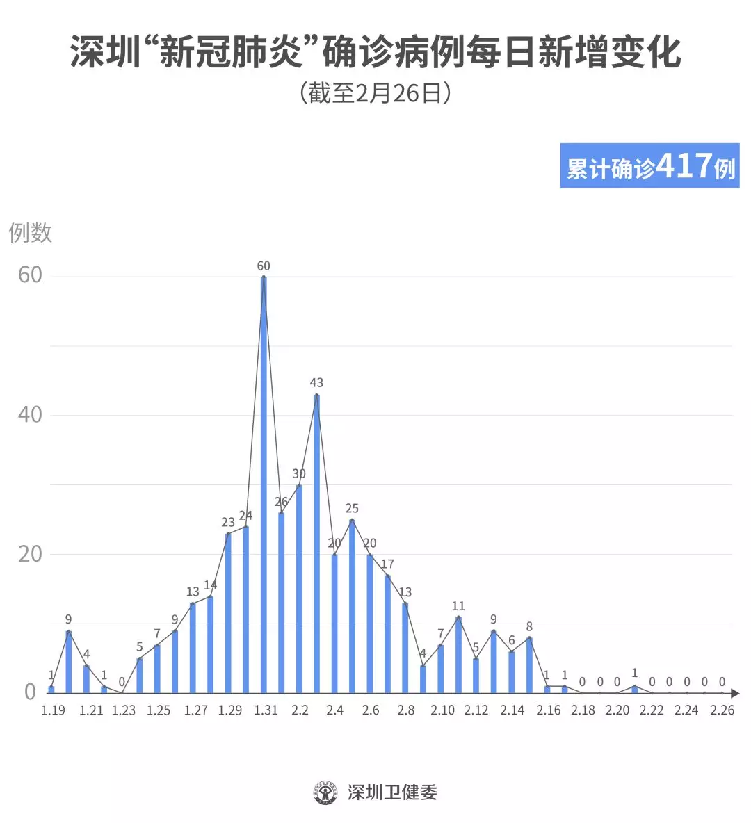 截至2月26日24時,深圳累計(jì)報(bào)告“新冠肺炎”確診病例417例。2月26日當(dāng)天全市無新增確診病例,當(dāng)天出院病例9例(從26日起不再公布出院個案)。