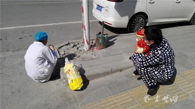 19日中午,鄖西店子鎮(zhèn)衛(wèi)生院女護(hù)士江世娥乘救護(hù)車(chē)從鄖西店子鎮(zhèn)轉(zhuǎn)運(yùn)一腦梗病人到鄖西縣人民醫(yī)院,途經(jīng)家門(mén)不能回家,在路邊蹲地吃婆婆煮的餃子,丈夫和9個(gè)月大的兒子兩米外相望的淚目場(chǎng)景。
