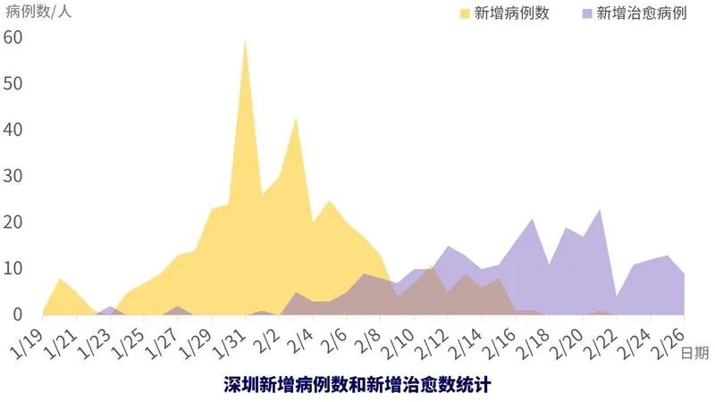 另一方面,深圳市新增治愈人數(shù)從2月9日到2月26日,除2月11日外,已經(jīng)有17天大于新增確診人數(shù)。截至2月26日,深圳累計出院271例,確診病例在院143例,治愈率已達65%。深圳市內(nèi)疫情已得到較好控制,“外防輸入,內(nèi)防擴散”等一系列措施取得了顯著成效。