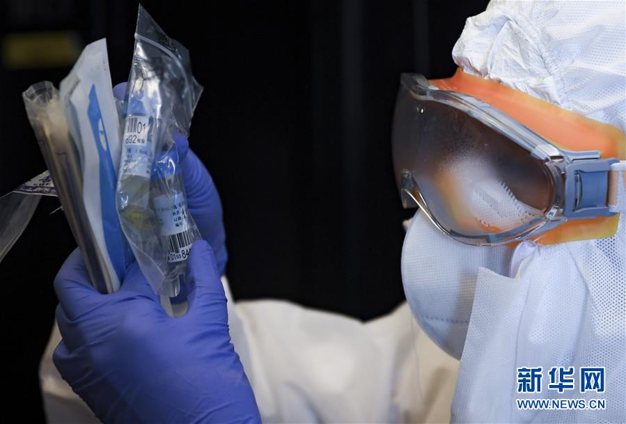 2月27日,在深圳龍崗的一家“健康驛站”,護(hù)士鐘笑瑜核對咽拭子采集人員的身份信息。 新華社記者 毛思倩 攝