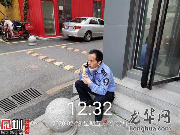 做完返深隔離人員沿途消殺工作,早已錯(cuò)過(guò)飯點(diǎn),記掛著接下來(lái)的種種工作,他轉(zhuǎn)身去便利店買了個(gè)面包,坐在店門(mén)口的臺(tái)階上,隨便對(duì)付一下。簡(jiǎn)單潦草的一頓午餐,卻是他難得的歇息片刻。