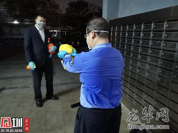 接到有返深人員的通知,他立刻帶隊(duì)趕往現(xiàn)場(chǎng),多次測(cè)溫后仍體溫偏高,他不放心地叫來(lái)三位一體人員,一番確認(rèn)之后,將發(fā)熱人員送往醫(yī)院,他則獨(dú)自善后對(duì)樓道進(jìn)行消毒,將近兩個(gè)小時(shí)的折騰,他終于得以到垃圾桶旁邊喘口氣。額頭勒出的印痕和黏在后背的制服,都是每一天的勛章。