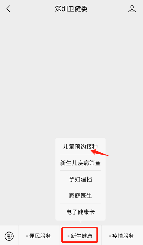 點擊公眾號菜單欄“新生健康”-“兒童預約接種”▽