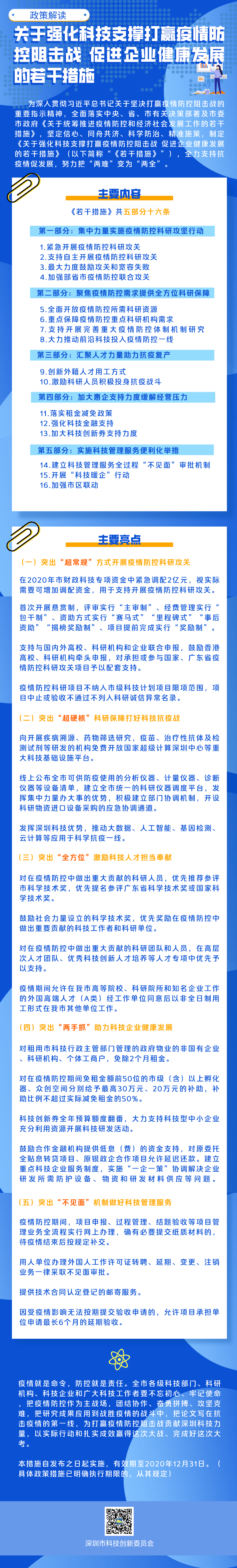 見圳客戶端·深圳新聞網(wǎng)2020年3月3日訊(見圳客戶端、深圳新聞網(wǎng)記者 陳婕)為深入貫徹習(xí)近平總書記關(guān)于堅(jiān)決打贏疫情防控阻擊戰(zhàn)的重要指示精神,深圳市科技創(chuàng)新委員會(huì)制定《關(guān)于強(qiáng)化科技支撐打贏疫情防控阻擊戰(zhàn)促進(jìn)企業(yè)健康發(fā)展的若干措施》(以下簡(jiǎn)稱“《若干措施》”),《若干措施》共五部分十六條,其中,突出“超常規(guī)”方式,在2020年財(cái)政科技專項(xiàng)資金中緊急調(diào)配2億元,視實(shí)際需要可增加調(diào)配資金,用于支持開展疫情防控科研攻關(guān),努力把“兩難”變?yōu)椤皟扇薄?/p>