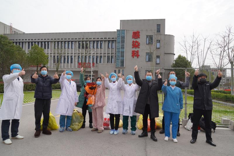 監(jiān)利縣人民醫(yī)院新冠肺炎患者出院時與醫(yī)護人員合影留念