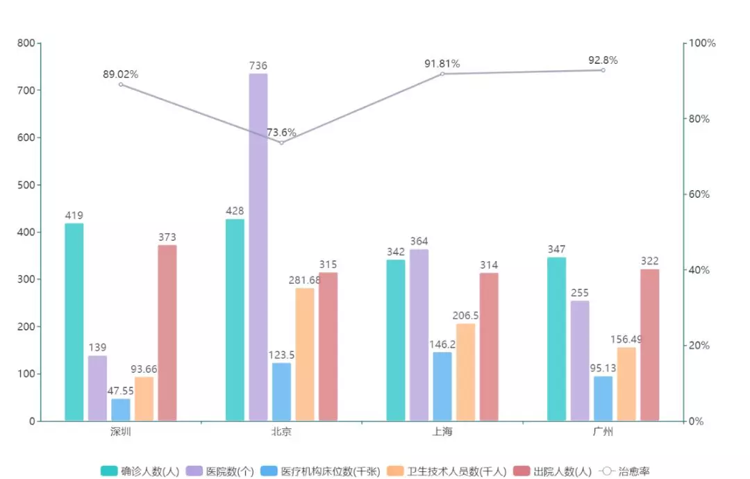 圖2北上廣深四大城市醫(yī)療資源對(duì)比圖