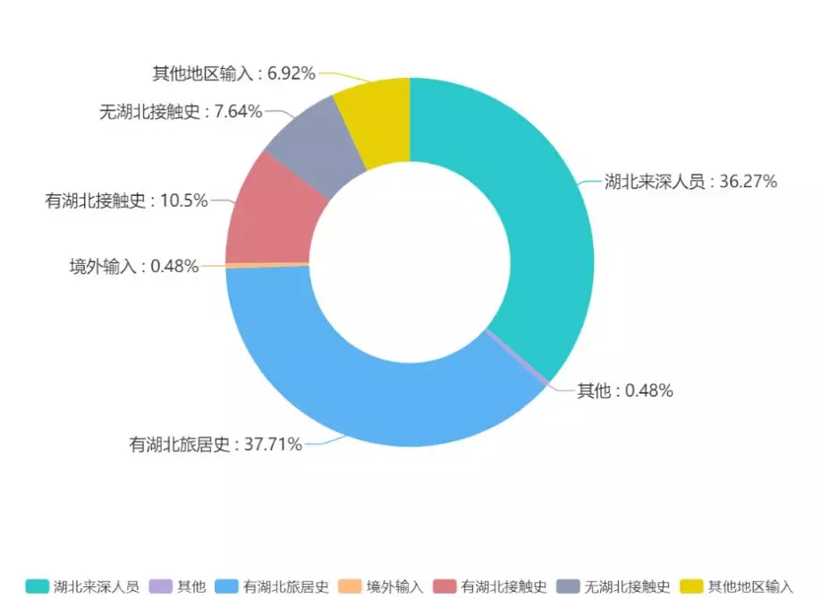 ▲所有輸入型病例中,近六成與湖北武漢有關(guān)聯(lián),湖北省其他城市也為重點(diǎn)來(lái)源地區(qū)??梢?jiàn),對(duì)湖北來(lái)深人員、有湖北旅居史人員的管控工作是防疫工作的重要一環(huán)。