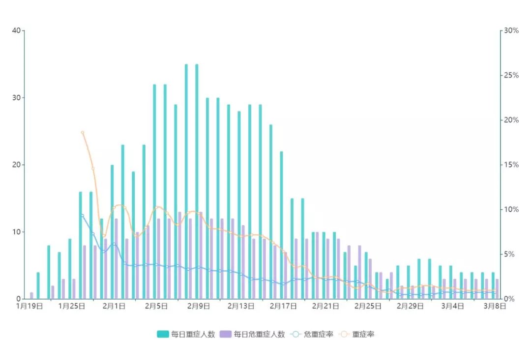 ▲2月7日起,每日新增確診病例數(shù)保持在較低水平。2月18日至3月5日,深圳僅新增兩例(均為境外輸入型病例)。這一方面是由于國(guó)內(nèi)疫情發(fā)生地采取封閉措施后,輸入型病例不斷減少;另一方面基層疫情防控工作取得較好成效,病毒本地傳播被有效阻斷。