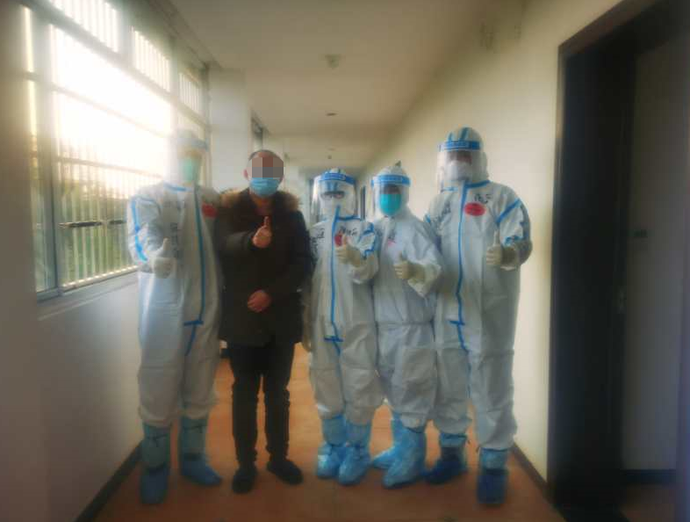 張金秀看見深圳醫(yī)療隊(duì)隊(duì)員們非常激動,聽到大家在外面說話的聲音以后,早早就走出房間站在走廊上連連招手致意?!拔艺诟渌麕讉€一起出院的人說,也不知道出院以后深圳的醫(yī)護(hù)人員會不會再來看望我們,沒想到正說著你們就來了?!闭f到這里,張金秀不由地紅了眼圈。面對記者的鏡頭,她大聲地跟深圳的朋友們打招呼:“你們等我回去接著一起嗨?。 碑?dāng)醫(yī)療隊(duì)員們和她告別時,她又一個勁兒地說:“咱們在深圳一定要約出來吃飯,我請客!”
