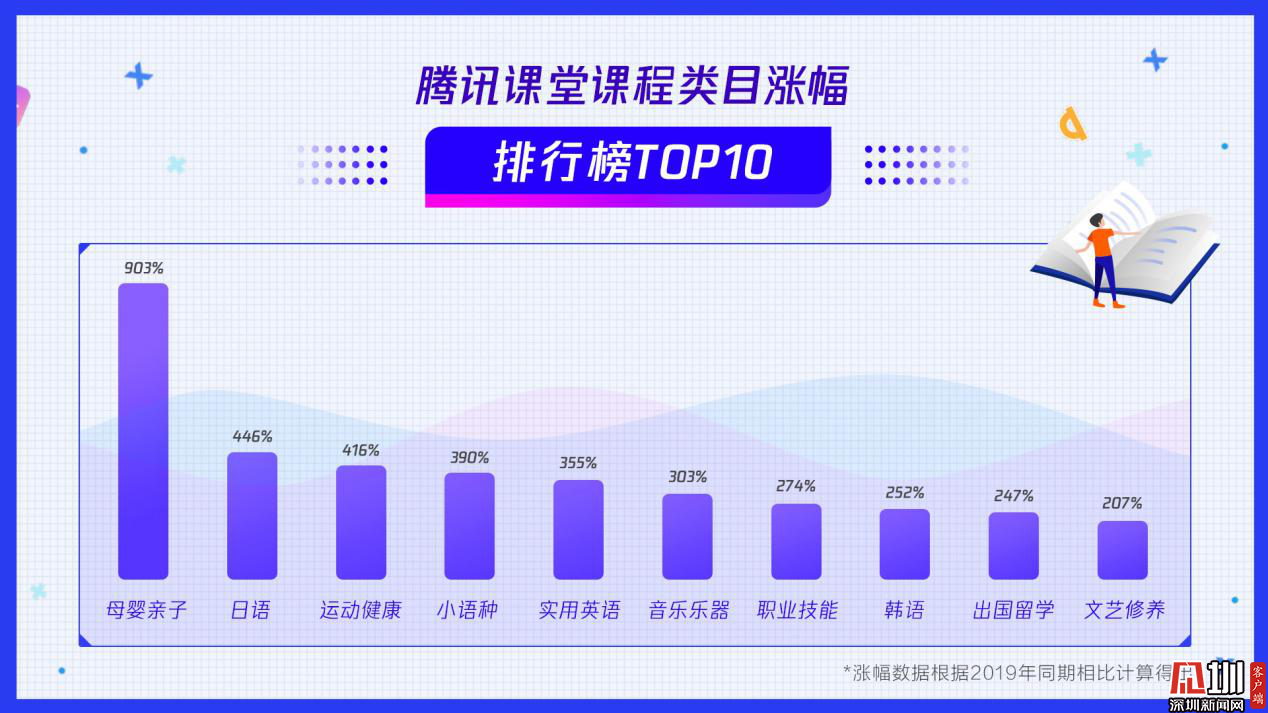 見圳客戶端·深圳新聞網(wǎng)2020年3月18日訊(見圳客戶端、深圳新聞網(wǎng)記者 劉夢婷)近日,在線職業(yè)教育平臺騰訊課堂發(fā)布數(shù)據(jù)報告:戰(zhàn)“疫”宅家期間,該平臺上課總時長提升3.5倍。同時,騰訊課堂還發(fā)布了最受歡迎課程類目(學習人數(shù))排行榜TOP10:職業(yè)技能、編程語言、建筑工程、互聯(lián)網(wǎng)產(chǎn)品、平面設計、實用英語、醫(yī)療衛(wèi)生、前端開發(fā)、設計軟件、繪畫創(chuàng)作。此外母嬰親子、日語、運動健康等課程學習人數(shù)同比漲幅均超過400%,成騰訊課堂增速最快類目,或成為未來在線職業(yè)教育新的增長點。IT互聯(lián)網(wǎng)就業(yè)類課程、工業(yè)產(chǎn)品設計類課程付費能力強,付費人數(shù)同比漲幅超過50%。
