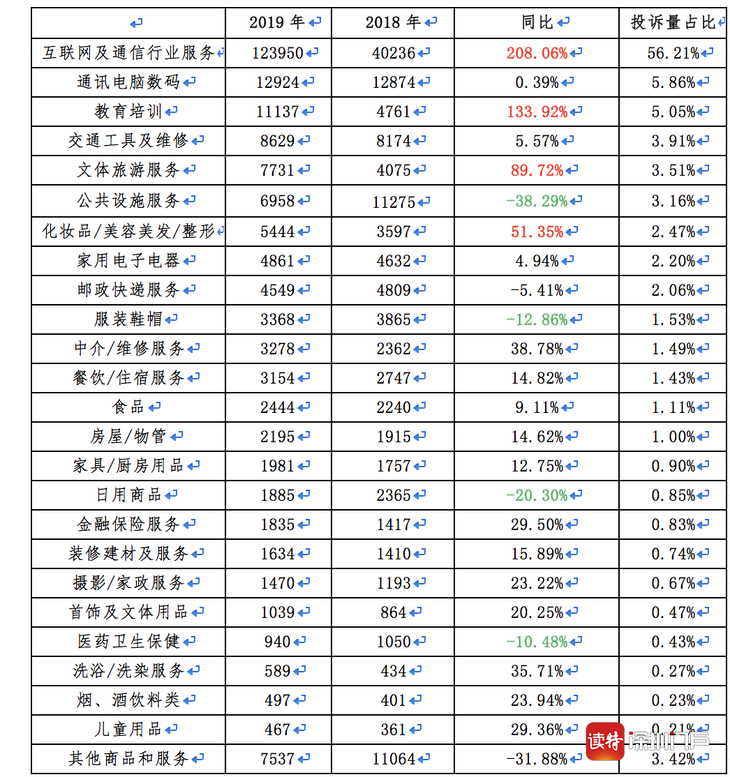 原標(biāo)題:2019年全年消費(fèi)投訴超22萬(wàn)宗 互聯(lián)網(wǎng)及通信行業(yè)服務(wù)投訴量增幅超2倍