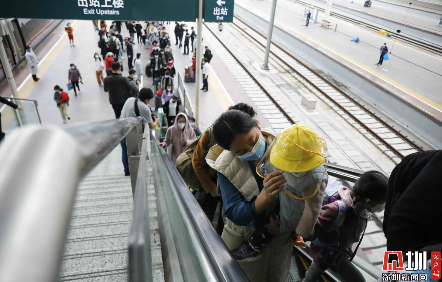 深圳北站西廣場(chǎng)出站口,三位“全副武裝”的旅客。
