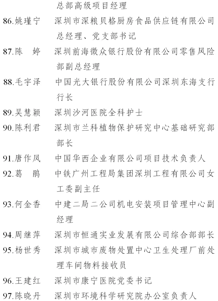 二、深圳市五一巾幗標(biāo)兵名單