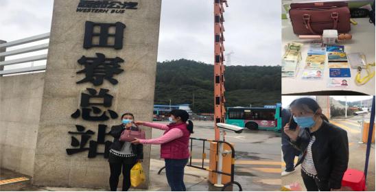 當(dāng)天下午,邱女士乘坐 M455線路公交車前往光明區(qū)文化館,途中她順手把包放在座位上,到站時(shí)下車匆忙居然忘了拿,等反應(yīng)過來(lái),車早已開遠(yuǎn),車牌號(hào)也看不清了,這可把她急壞了。冷靜下來(lái)后,邱女士趕緊致電西部公汽客服求助。客服人員了解情況后,將其電話轉(zhuǎn)接到該公交車所在的田寮車隊(duì)。班車隊(duì)管理人員根據(jù)邱女士的描述,很快鎖定她乘坐的是由董健康師傅駕駛的牌號(hào)為粵 B40553D的車,便迅速讓 GPS監(jiān)控員關(guān)注車輛情況,聯(lián)絡(luò)司機(jī)董師傅留意車上是否有符合失主描述的手提包,確認(rèn)了包仍在座位上以后,及時(shí)反饋失主邱女士,安撫其焦慮情緒。