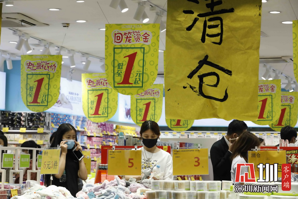 市民們在打折的門店選購商品。