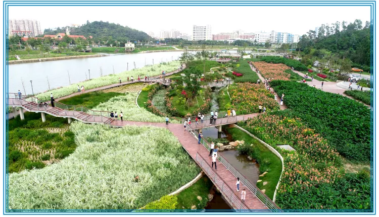 三溪河禾塘山水段位于大鵬新區(qū)金嶺路,于2019年完成整治。禾塘山水景觀節(jié)點(diǎn)水質(zhì)清澈(達(dá)到地表水II類以上標(biāo)準(zhǔn)),環(huán)境宜人,設(shè)置了跌水、疏林草地、花境坡等景觀和慢行步道、親水棧道、景觀亭、垂釣臺(tái)等一系列設(shè)施,成為深受市民喜愛的綜合性濕地公園。