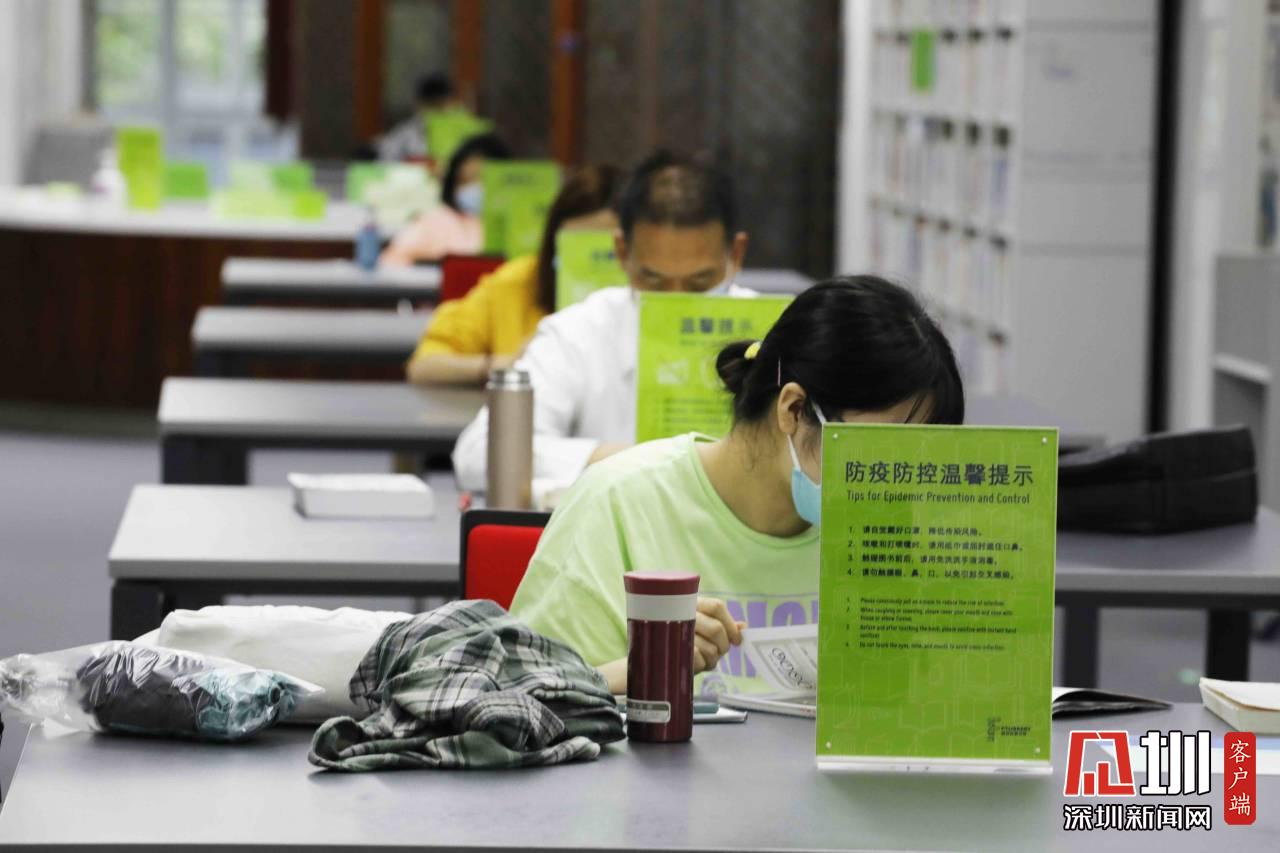 現(xiàn)在正處疫情期間,福田區(qū)圖書館也調(diào)整了開放時(shí)間,從原來的朝九晚九,改為朝九晚五。在座位安排方面,記者在現(xiàn)場(chǎng)看到,自習(xí)的市民基本上都是單人單桌,保持安全距離。