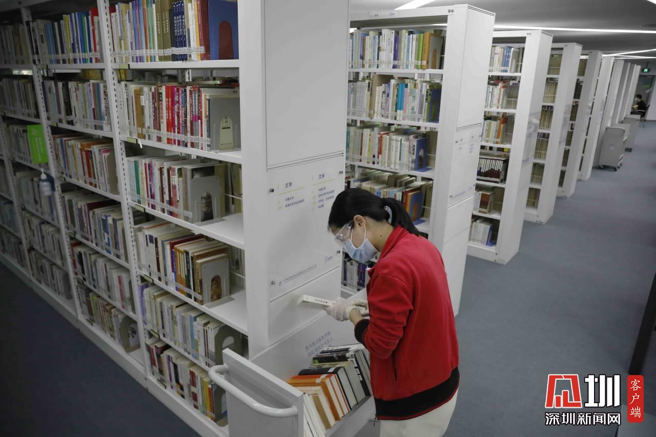工作人員正在對(duì)福田圖書館的書做消毒處理。
