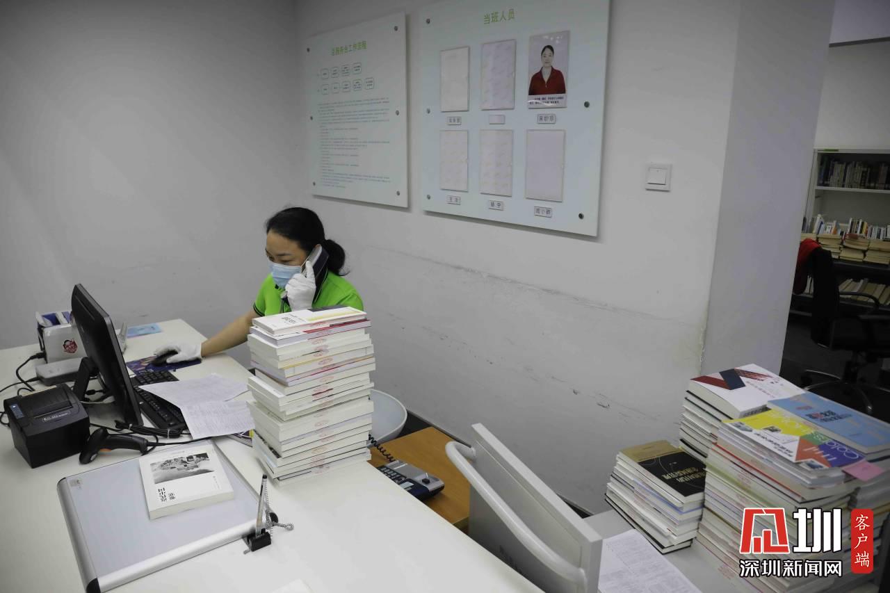 工作人員正在整理外館的書籍,每周外館的書籍會(huì)到福田圖書館交流一次。