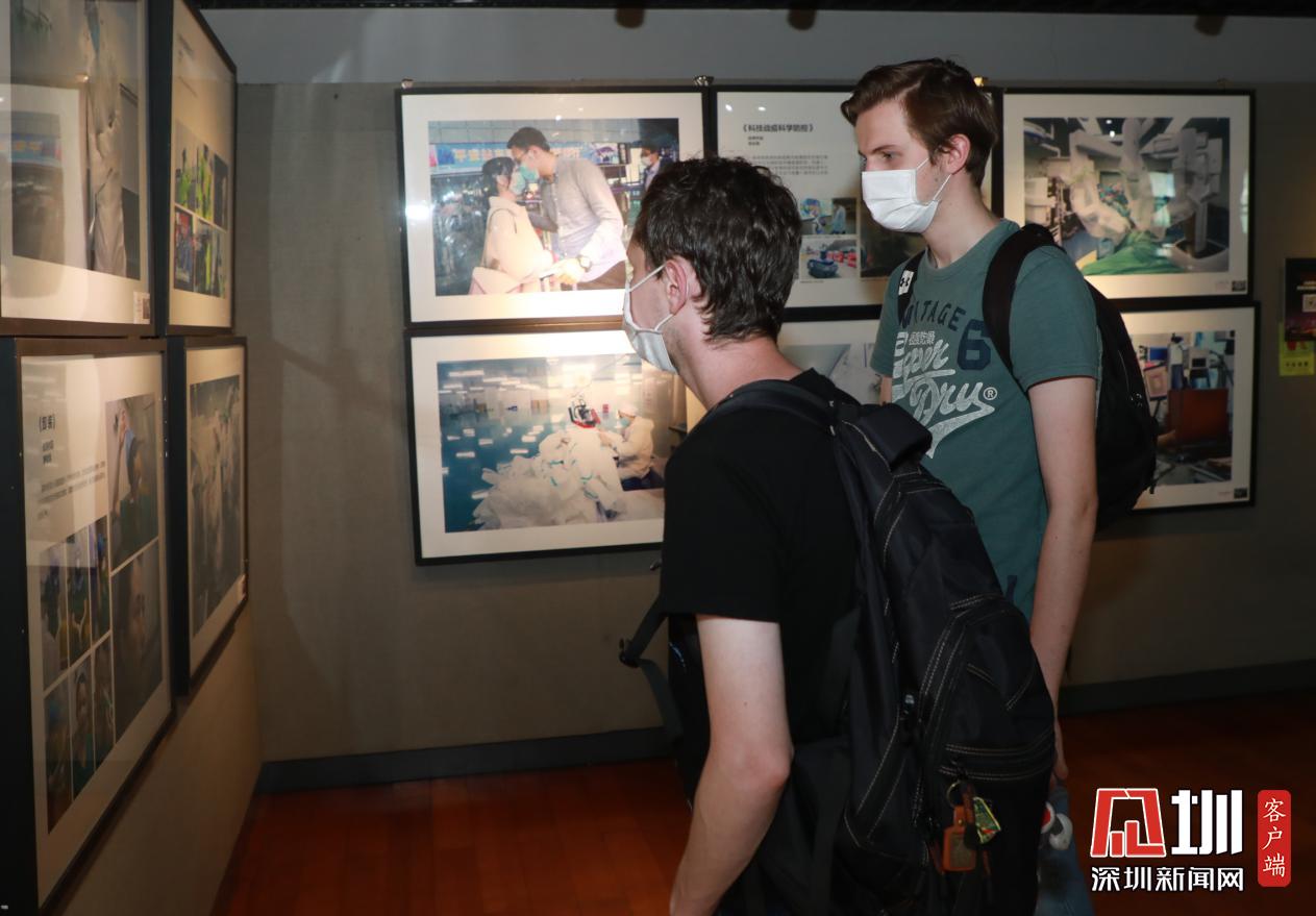 在優(yōu)秀攝影作品展中參觀的外國友人