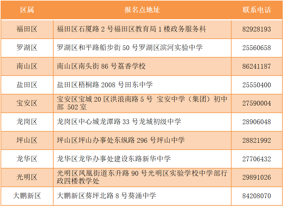 中考社會報名點一覽表 深圳各類考生具體報考范圍、各類升學(xué)資格申報所需條件和材料以及相關(guān)報名要求,考生可通過深圳市招生考試辦公室官網(wǎng)(zkb.sz.gov.cn)及官方微信公眾號(深圳市招生考試辦公室)查閱,市招考辦也將第一時間通過上述渠道發(fā)布各類中考資訊。