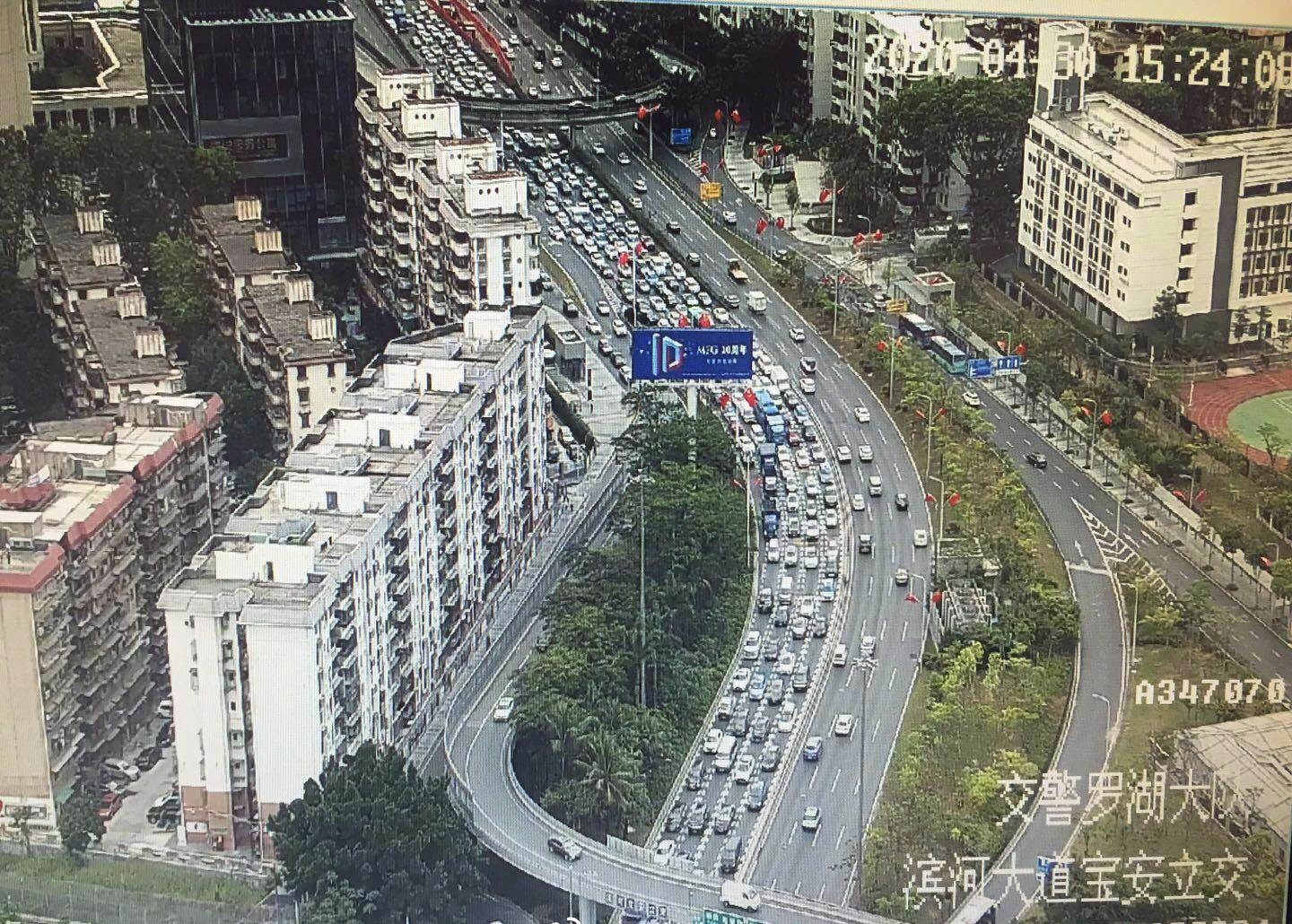 濱河大道是深圳市最先進入晚高峰節(jié)奏的道路,15時30分,濱河大道寶安立交路段西往東方向開始出現(xiàn)車多緩行。車流量慢慢增多,到18時許,濱河大道西往東方向發(fā)生嚴重交通擁堵,從竹子林立交到鹿丹村路段一片“紅燈”。