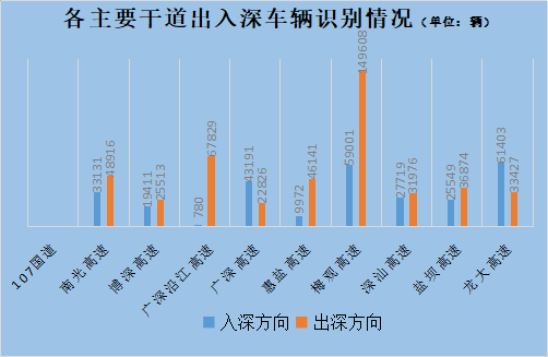 全市入深方向39.71萬(wàn)輛,環(huán)比上升0.19%;出深方向50.29萬(wàn)輛,環(huán)比上升31.45%。