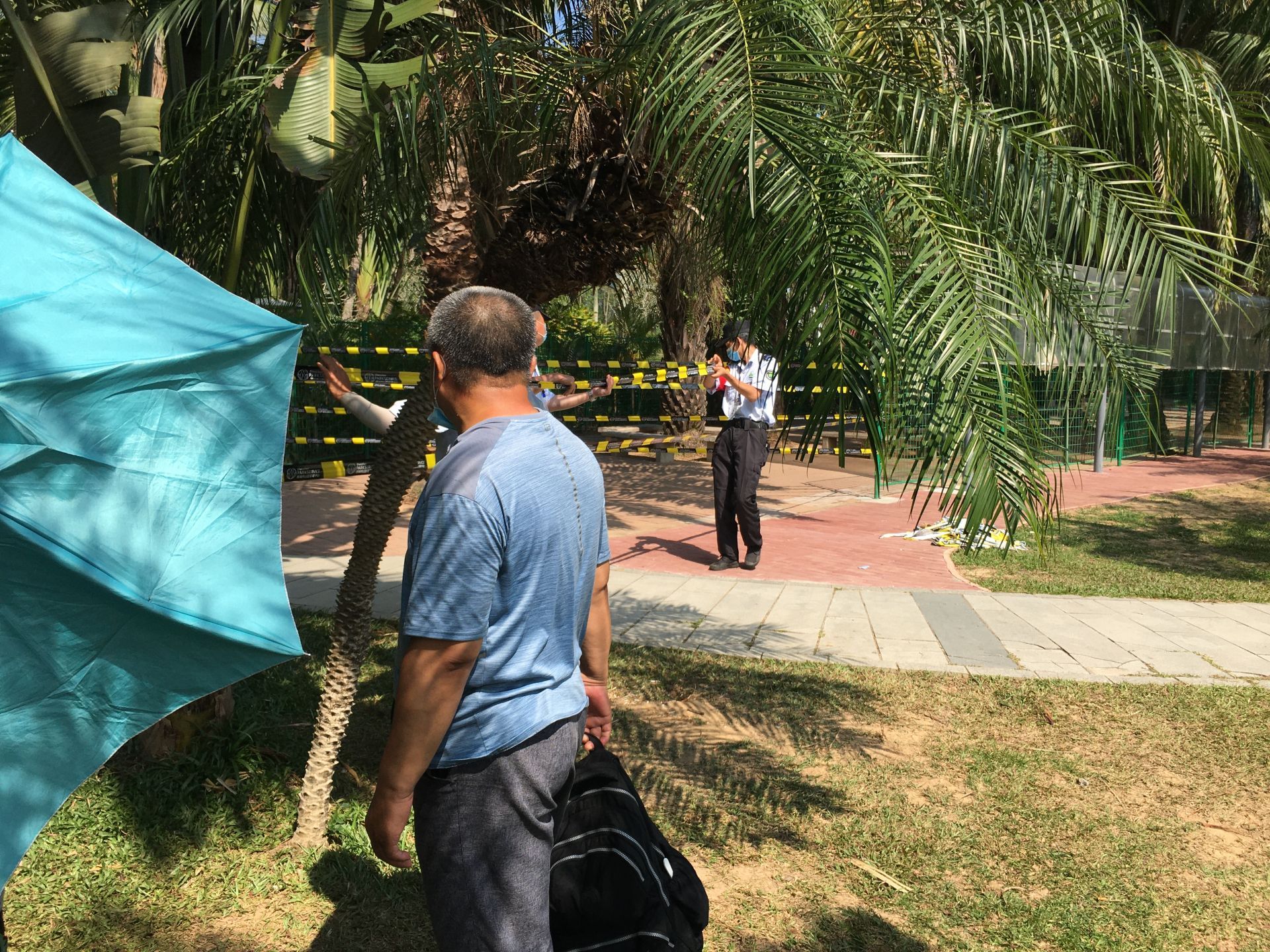 蓮花山公園工作人員在新設(shè)警戒線