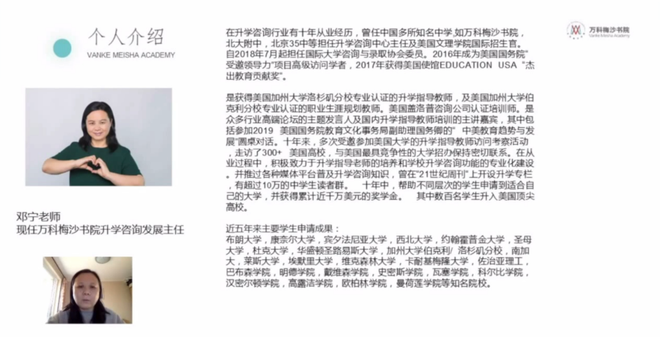 萬(wàn)科梅沙書院2020海外升學(xué)經(jīng)驗(yàn)分享會(huì)線上亮相