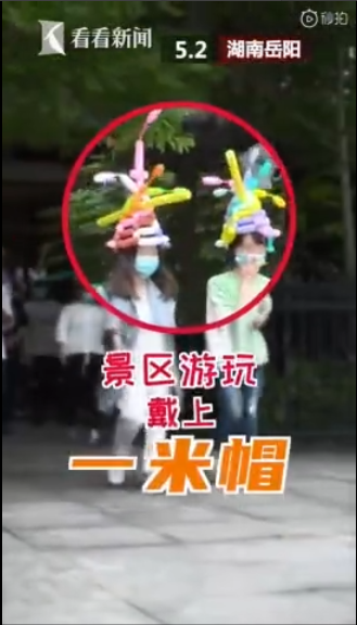 景區(qū)發(fā)一米帽提醒保持距離
