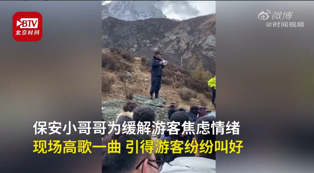 保安4千米海拔放歌安撫游客