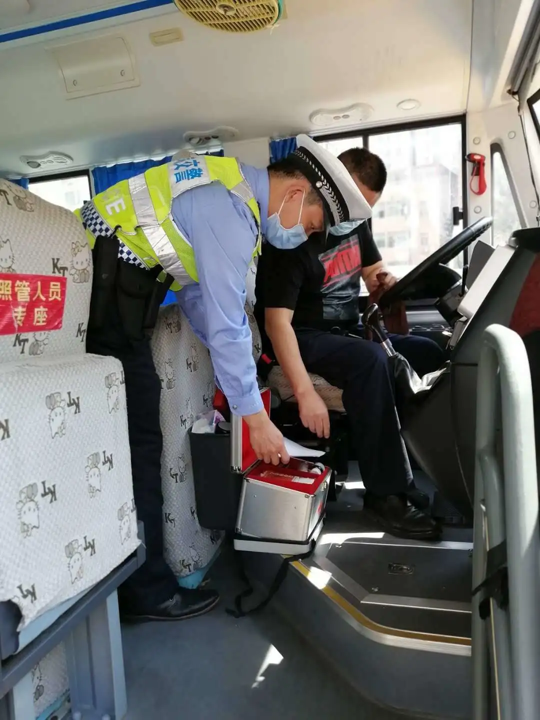 檢查校車車況及安全裝置,是否落實(shí)“每個(gè)座位一條安全帶”、配備行駛記錄功能的衛(wèi)星定位裝置、干粉滅火器、急救箱和照管人員座椅(位)、應(yīng)急出口和應(yīng)急錘(逃生錘)等安全設(shè)備、噴涂放大牌號(hào)和統(tǒng)一顏色、粘貼標(biāo)識(shí)等。