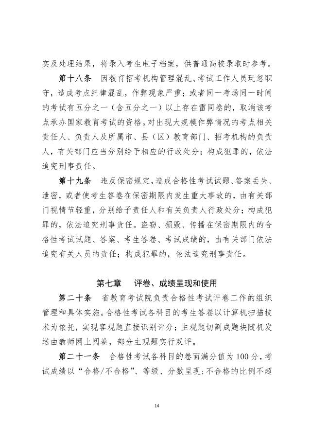其中,合格性考試覆蓋所有學(xué)習(xí)科目,語文、數(shù)學(xué)、英語三門科目每年考1次,安排在1月開考;思想政治、歷史、地理、物理、化學(xué)、生物學(xué)六門科目每年考2次,安排在1月和6月開考。合格考成績呈現(xiàn)方式有三種:合格/不合格、等級、分數(shù)。考試成績一考兩用,既作為學(xué)生畢業(yè)的依據(jù),也作為春季高考招生的依據(jù)之一。