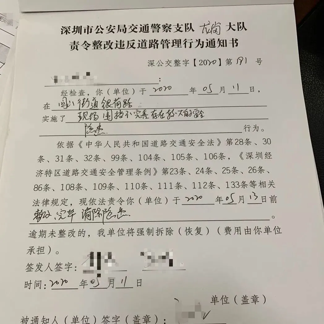 對(duì)該施工單位在橫坪連接線路段占道施工導(dǎo)致人行道不連貫、機(jī)非沖突,存在較大交通安全隱患的行為,龍崗交警依法處罰10000元并責(zé)令立即整改。