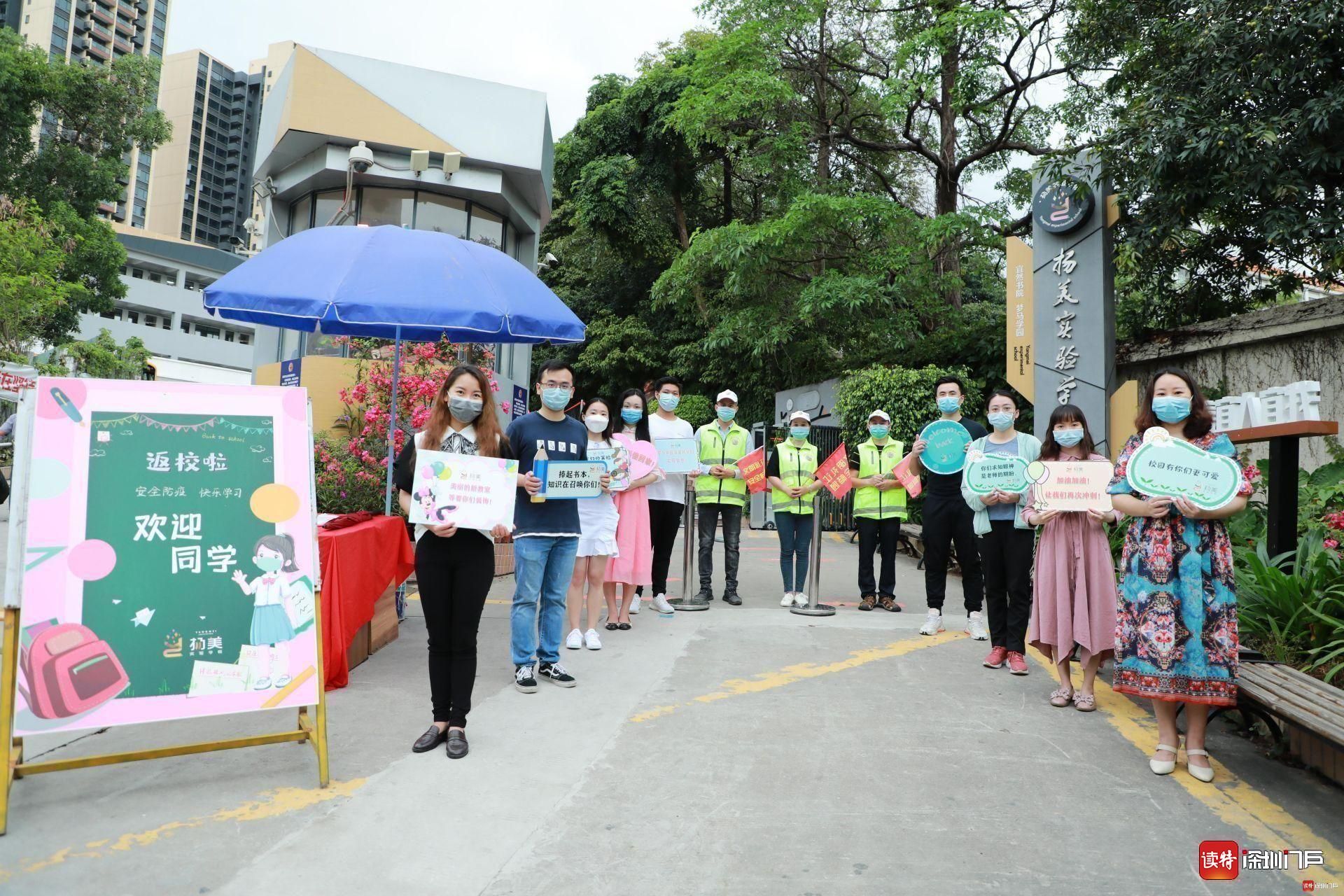 花城小學(xué):點頭問好,微笑傳情,因為有愛,相隔一米。老師們站在校門口歡迎“小花”全面歸來?。ㄗx特記者李麗)