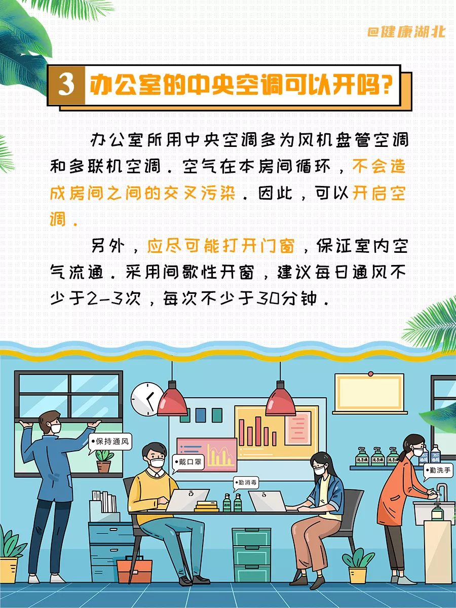 ③開空調(diào)時(shí)暫時(shí)不要關(guān)閉門窗,讓空氣流動(dòng)一段時(shí)間以后,再關(guān)閉門窗。使用中央空調(diào)的時(shí)候應(yīng)該提高新風(fēng)率,并保持一定的空氣流通和自然通風(fēng)。
