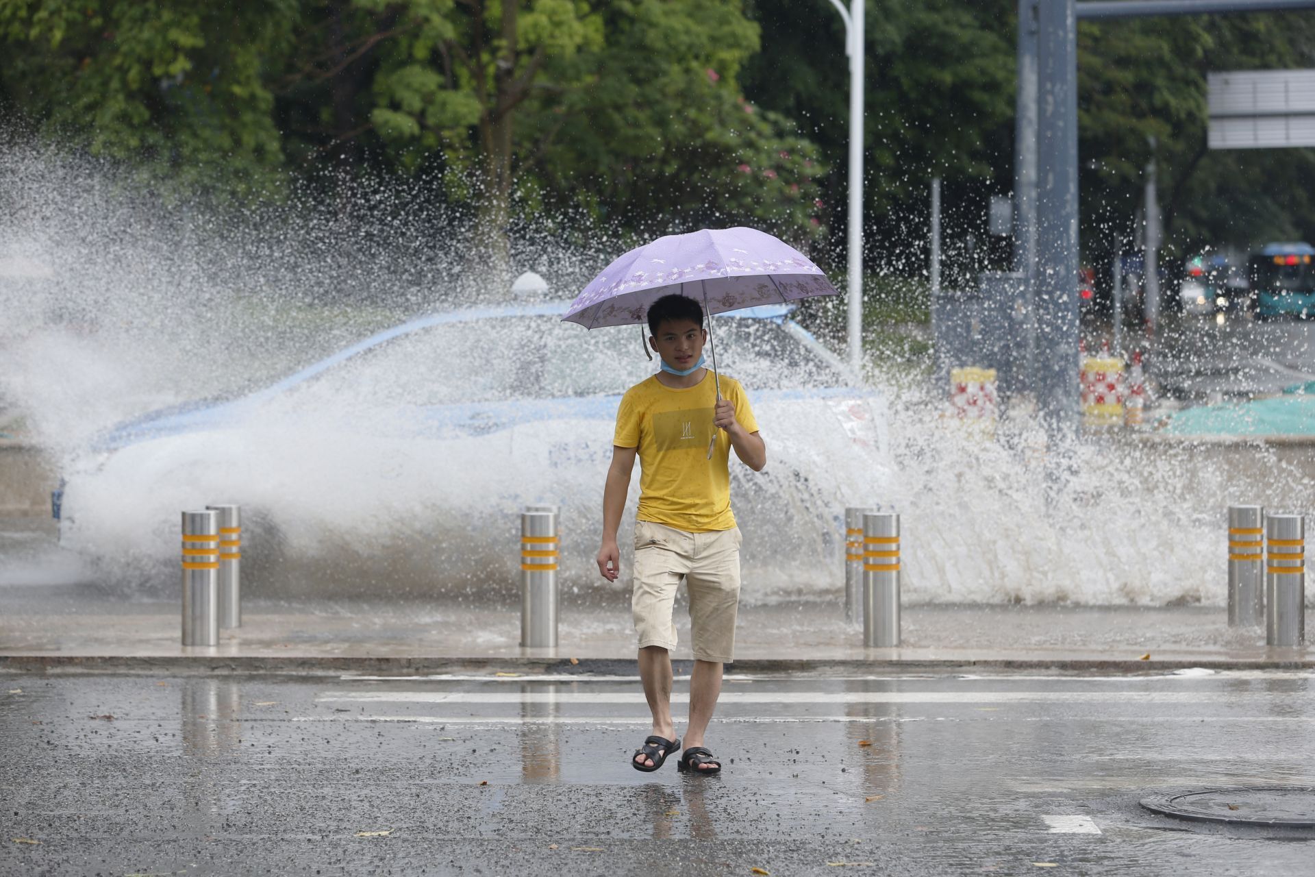 見圳客戶端·深圳新聞網(wǎng)2020年5月26日訊(深圳特區(qū)報記者 楊浩翰)2020年5月26日中午13:03分,深圳氣象臺發(fā)布暴雨黃色預(yù)警,福田區(qū)及深圳各個區(qū)遭遇短時強(qiáng)降水,降水導(dǎo)致福田區(qū)部分道路水浸,出行的市民十分謹(jǐn)慎經(jīng)過水浸路面。